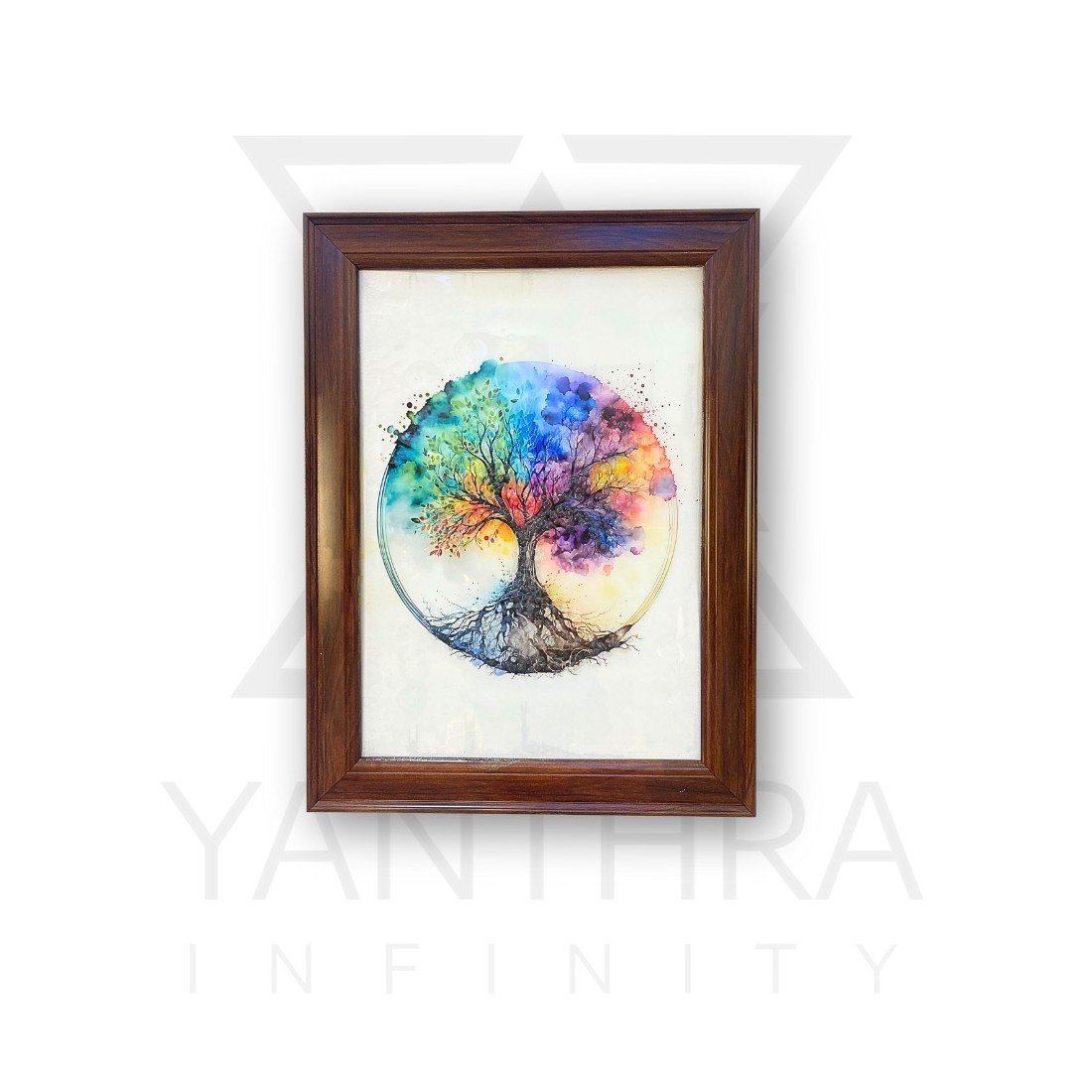 “Circle of Life” is a mesmerizing resin art frame that features a radiant tree enclosed in a circular form, symbolizing balance, life, and growth. The flowing colors—from vivid blues to fiery oranges—merge through high-gloss resin to create a stunning 3D effect. This artwork blends spirituality with contemporary design, perfect for homes that celebrate nature and mindfulness.