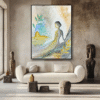 Step into a realm of reflection and tranquility with “Silent Serenity”, a handcrafted texture art that embodies calmness and spiritual stillness. Featuring a seated feminine silhouette amidst soft landscapes and symbolic leaves in green and gold, this vertical piece blends nature, soul, and stillness in an earthy palette.
