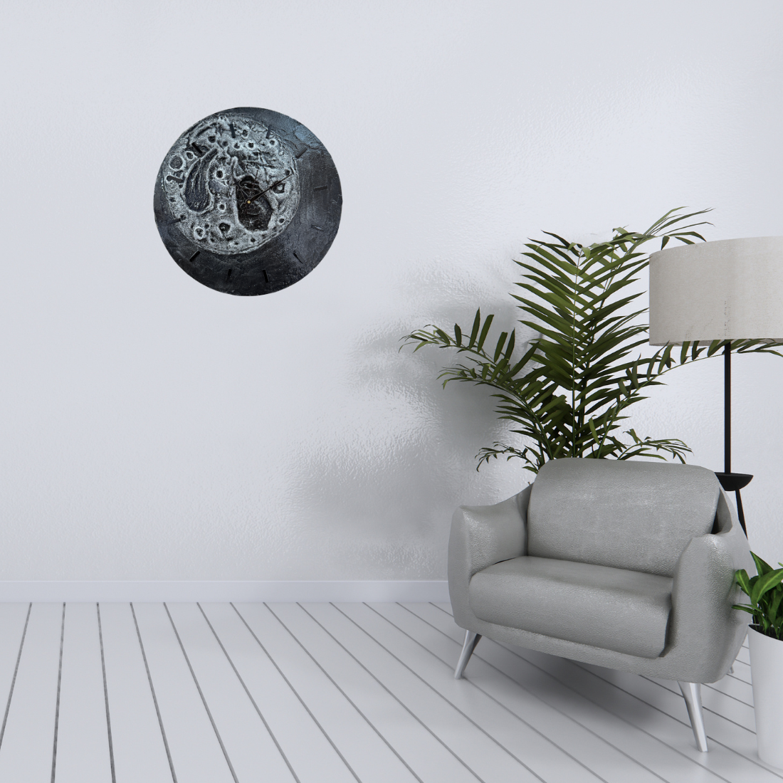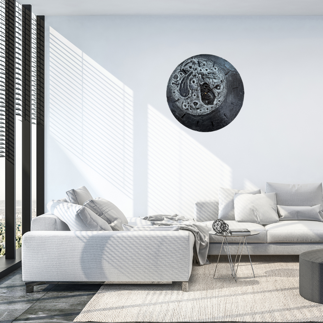 The Moon Surface Hand-Sculpted Wall Clock is inspired by the mystery of space, featuring hand-sculpted lunar craters and textures. A perfect piece for space lovers, modern interiors, and premium décor themes.