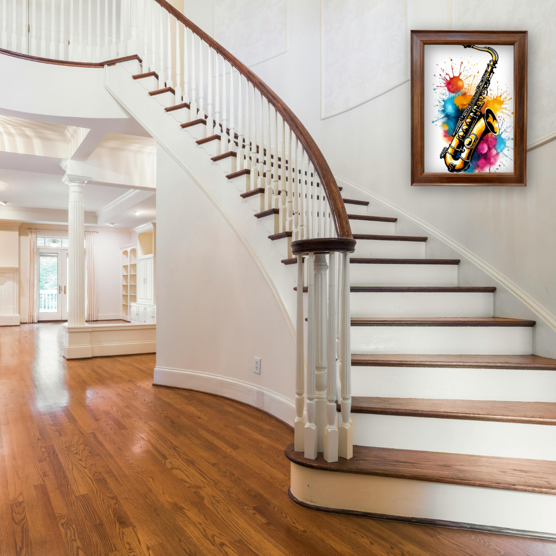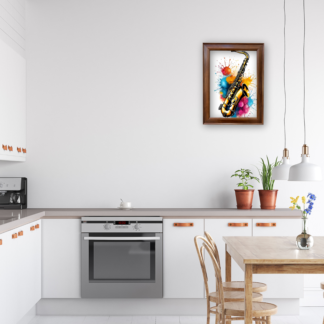 Celebrate the spirit of music with the Saxophone Wall Art Frame. This artwork captures the elegance of the saxophone with a burst of colorful splashes, symbolizing creativity, rhythm, and passion.